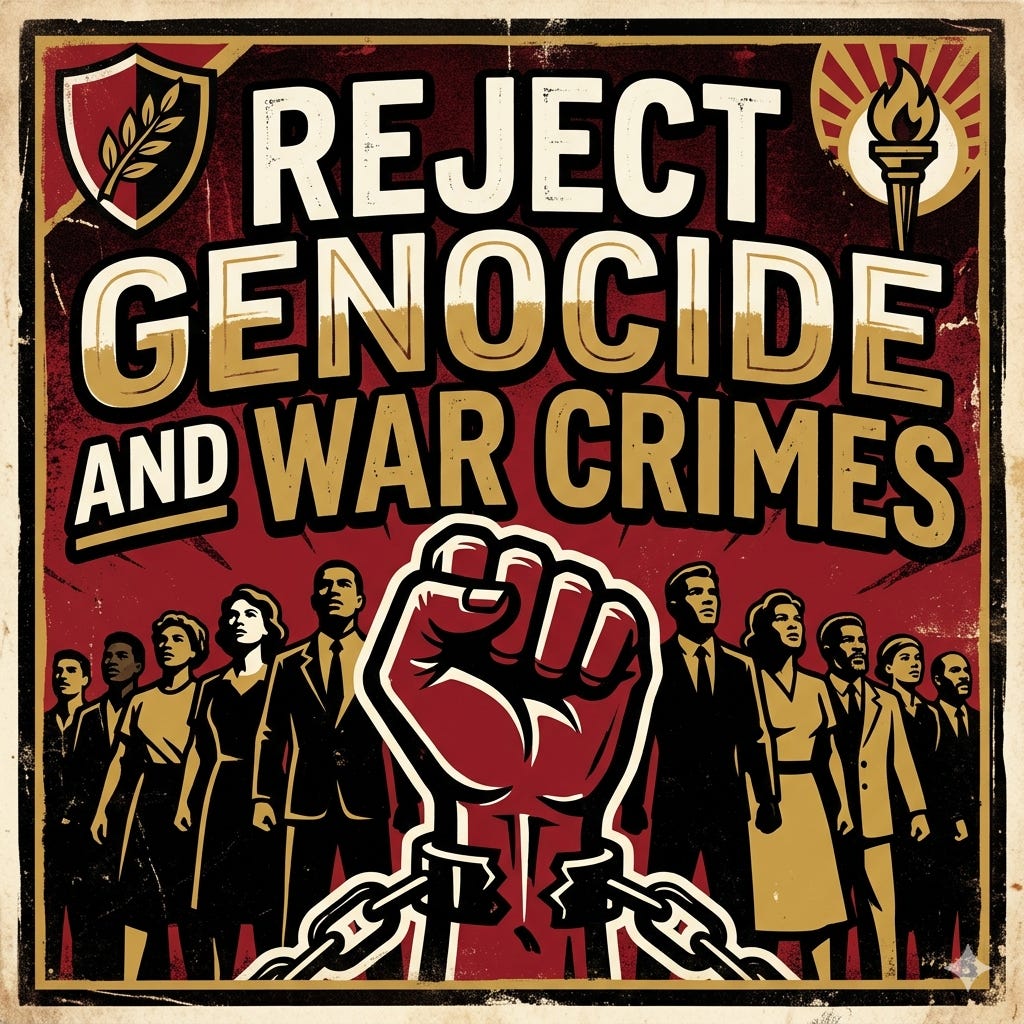 I reject genocide and war crimes, which are the exact actions the President of the United States, Donald Trump, has openly professed he wants to do and will do. This is morally rep...