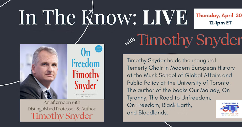 In The Know Live with Timothy Snyder is sponsored by Indivisible CLT in partnership with the Indivisible North Carolina statewide chapters. REGISTER FREE on Mobilize!Subscribe nowO...